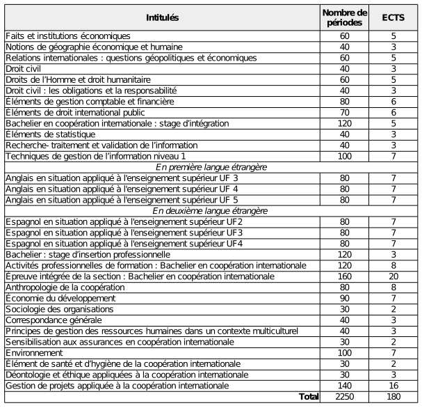 UNITÉS DE FORMATION CONSTITUTIVES DE LA SECTION